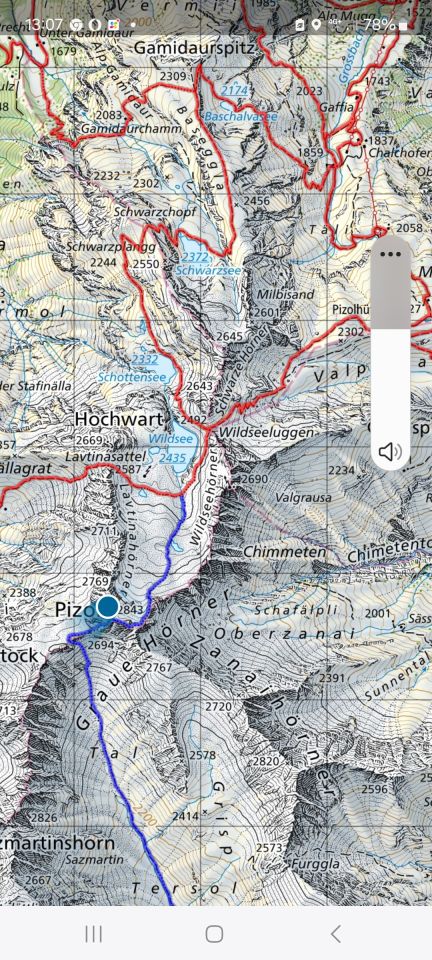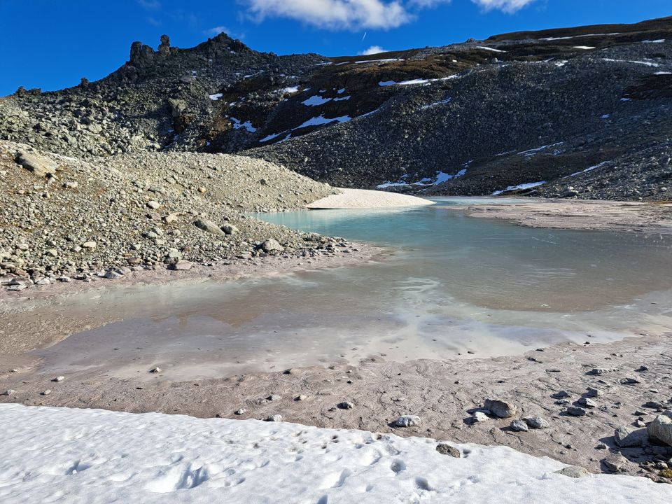 Ab da zu Fuss bis 2600m Schneefrei aber Steine am Schatten noch reifüberzogen und glitschig.