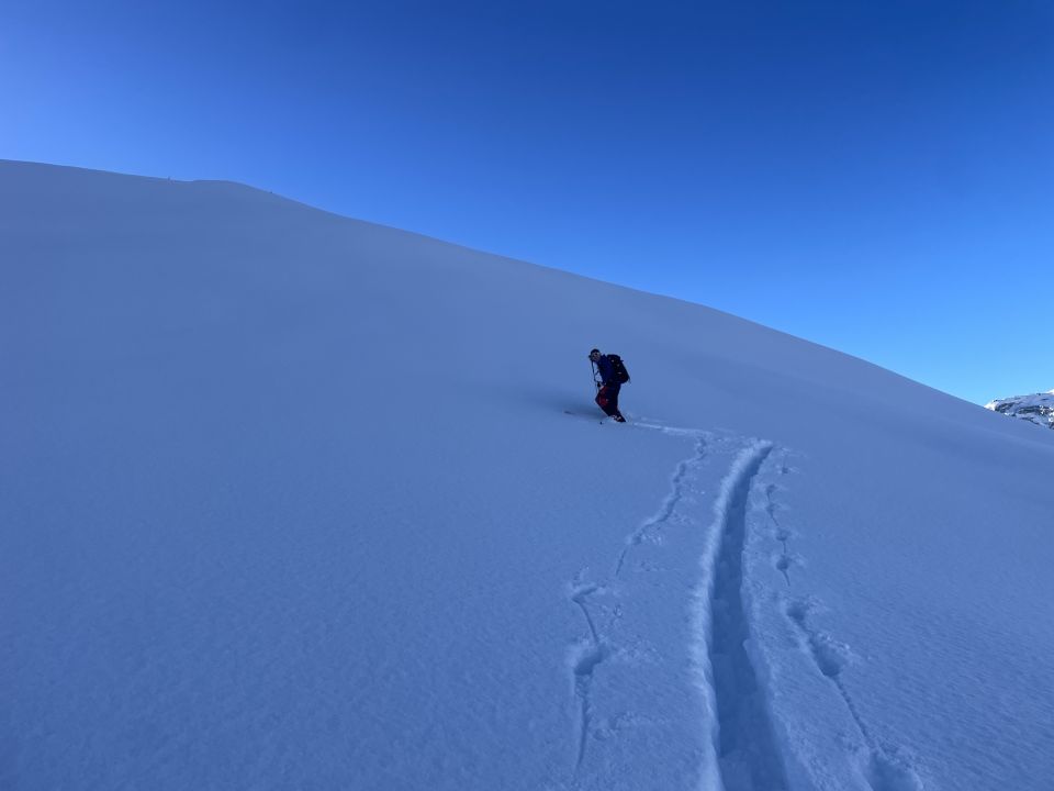 Für viele vielleicht ein Machbar aber aufgrund des doch vielen unverspurten Schnee und den Berg für sich alleine zu haben, ein Gut, hat Spass gemacht