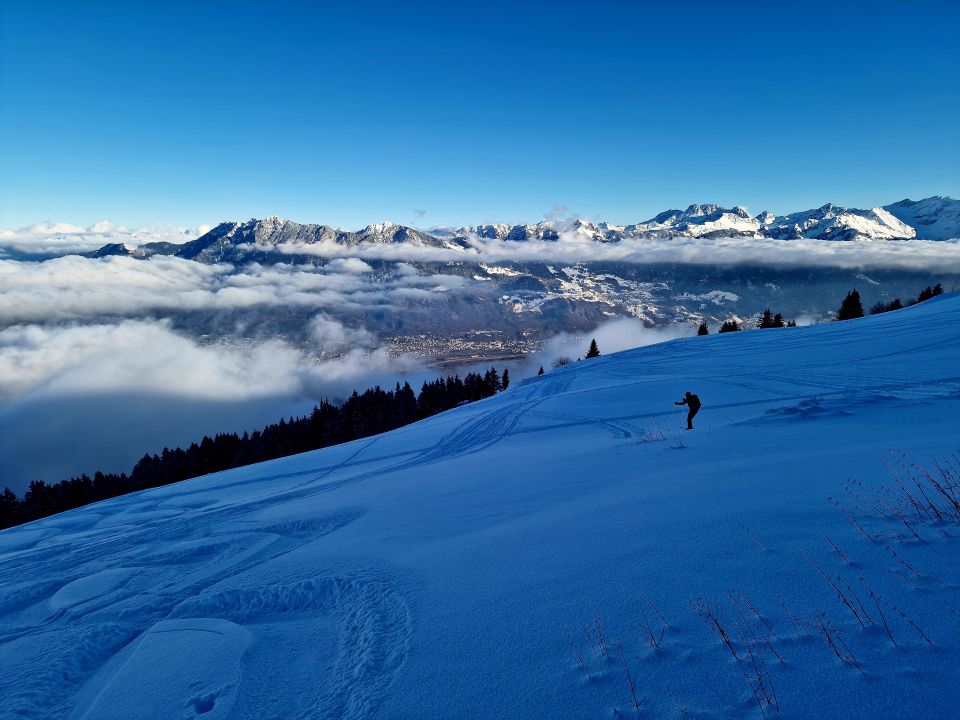 Bis ca 1700 HM wenig Schnee und teilweise fehlende Grundlage darüber war es erstaunlich gut ca 10 -20 cn Neuschnee auf gut zu fahrender Unterlage