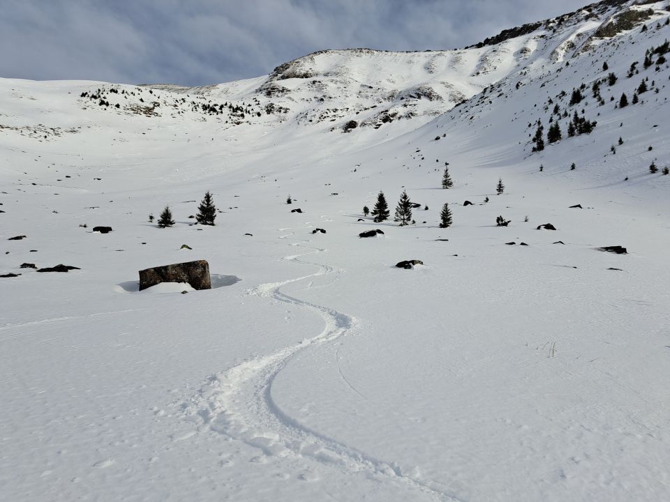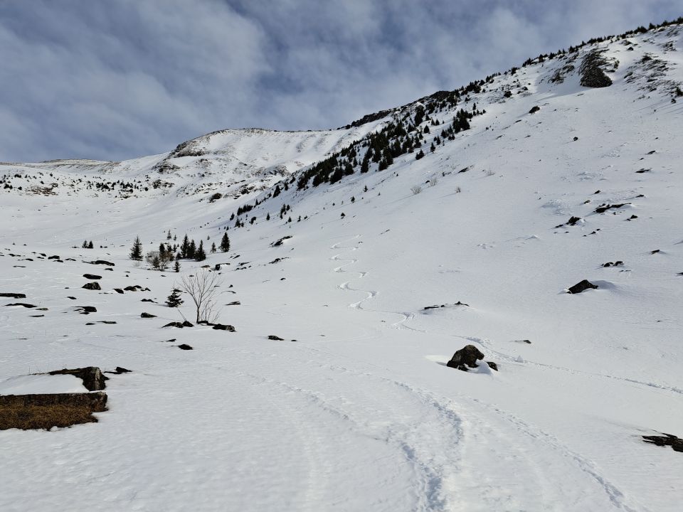 Nur kurz 10m schneefrei auf ca 1300m sonst bis Gipfel durchgehend.