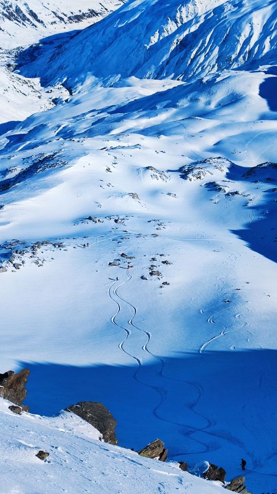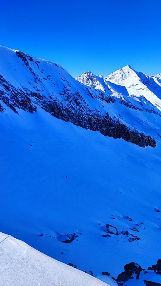 Direktabfahrt Nordostflanke Rottälihorn wurde auch gemacht, hat aber viele versteckte Steine anhand der Kratzgeräusche und den lauten Schreien der Abfahrer...