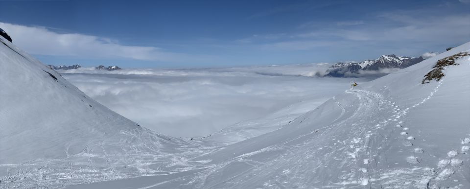 Allein die Pistenabfahrt durfte in dichtestem Nebel absolviert werden, die Wolkendeicke reichte bis knapp unterhalb der Pizolhütte und wollte sich auch am Nachmittag nicht auflösen.