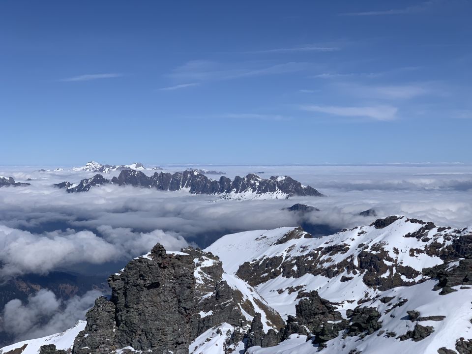 Gipfel Aufstieg überwiegend frei (Seilsicherung). Dazu Kaiserwetter und Windstille, ein Tag zum genießen.