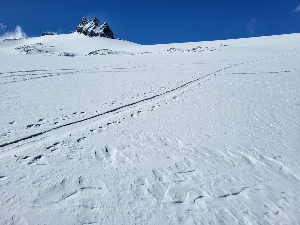 Gletscher gut eingeschneit, aber trotzdem fehlt der Schnee.