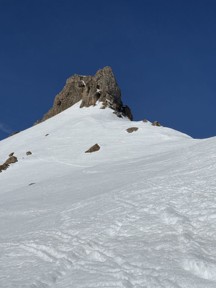 Super, wenn man in dieser Region total alleine ist. Das Skigebiet und die Spitzmeilenhütte sind mittlerweile geschlossen. Da muss man entweder die Ski weit tragen oder mit Schneeschuhe kombiniert laufen. Aber dafür totale Einsamkeit.