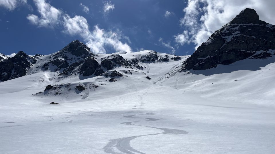 Es folgte, analog dem Aufstieg, die Tragestrecke bis hinunter zu Punkt 2103. Anschliessend hiess das Abfahrtsspiel „Memory“ oder „No risk - no fun“. Wo war wohl die durchgängigste Schneedecke zu finden?
