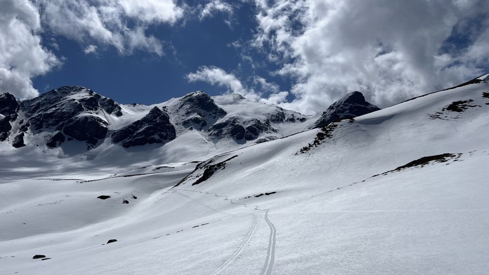 Erst auf Höhe der ehemaligen Silberminen konnte wieder „gefellnet“ werden, wenn auch immer wieder 2 bis 10 m über weiches Murmeltierweideland tappend.