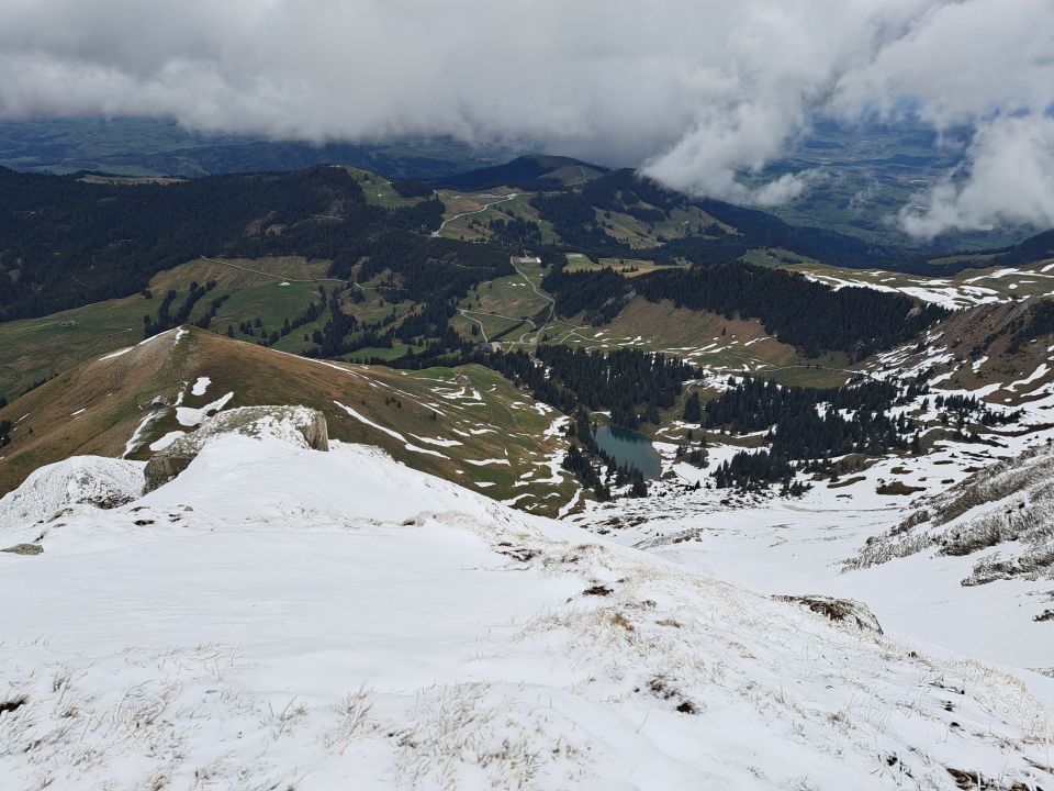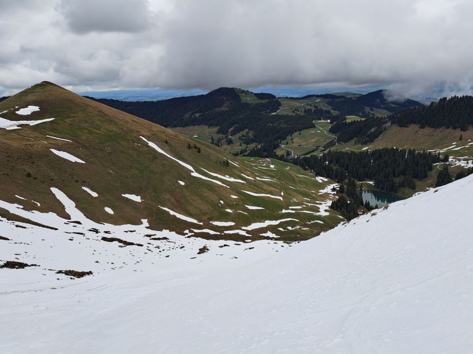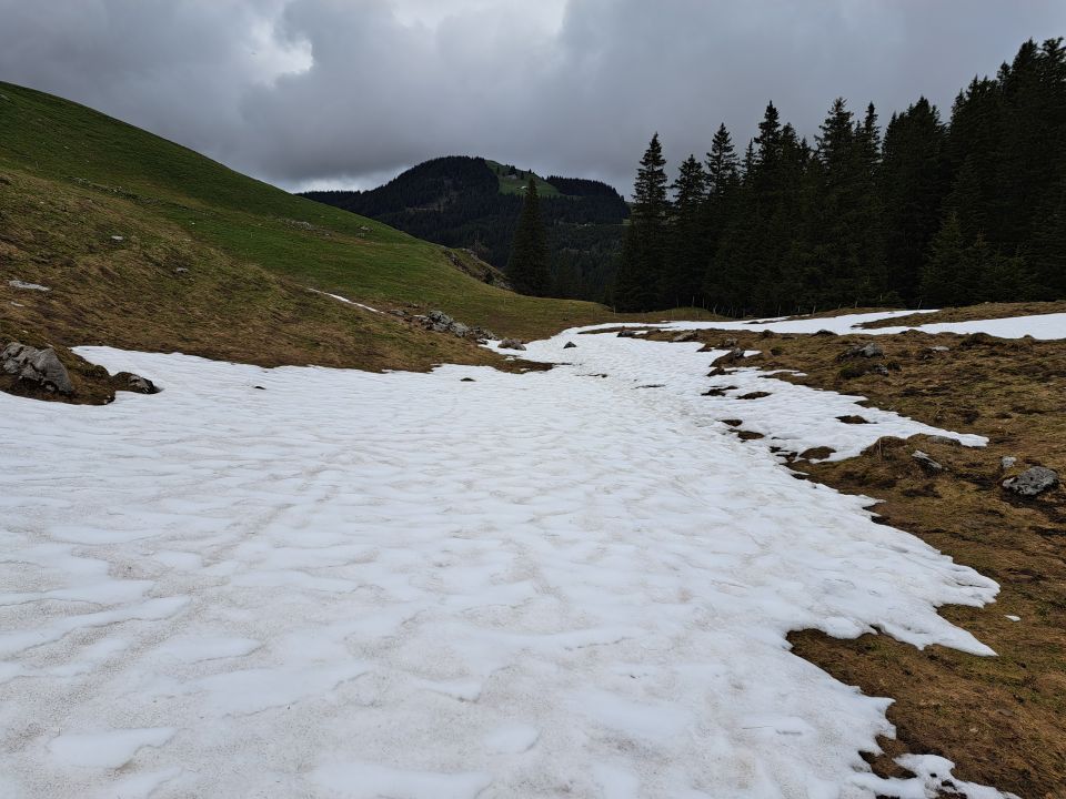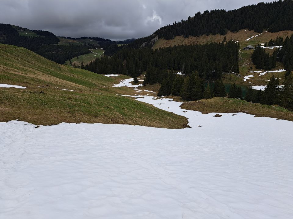 Ab da bis Obere Gantrischhütte 3 kurze schneefreie stellen und oberhalb der Hütte bis Morgetenpass durchgehend Schnee.