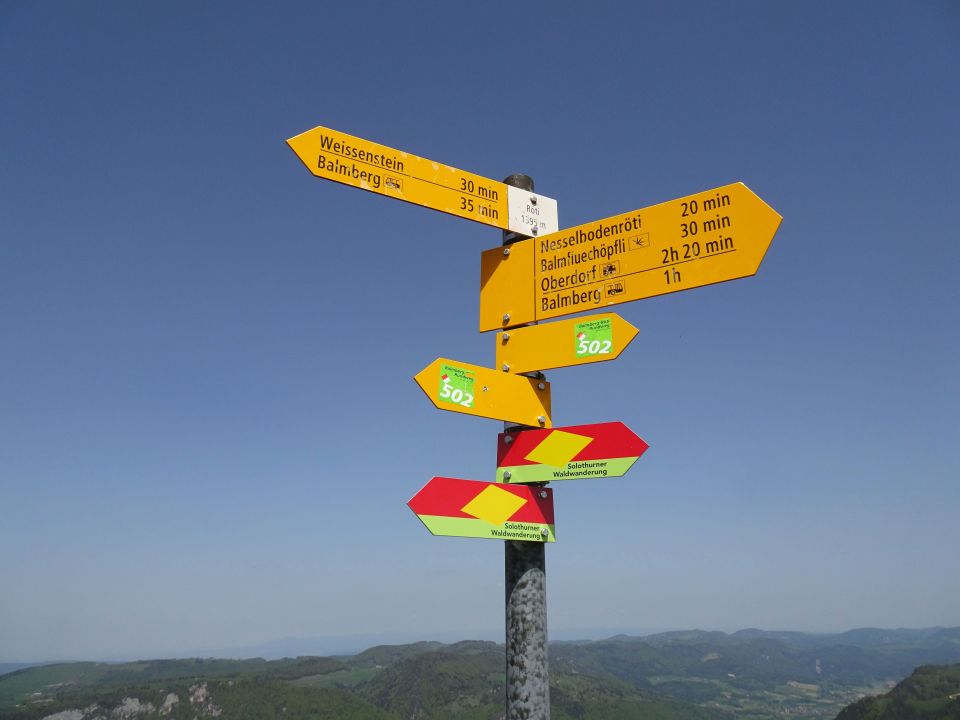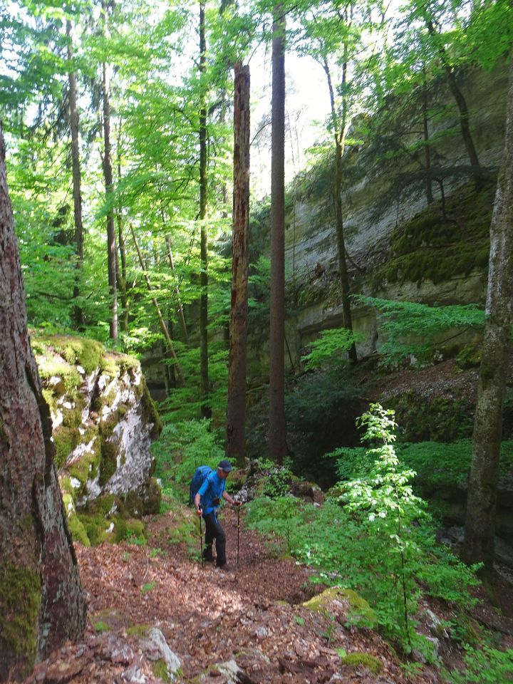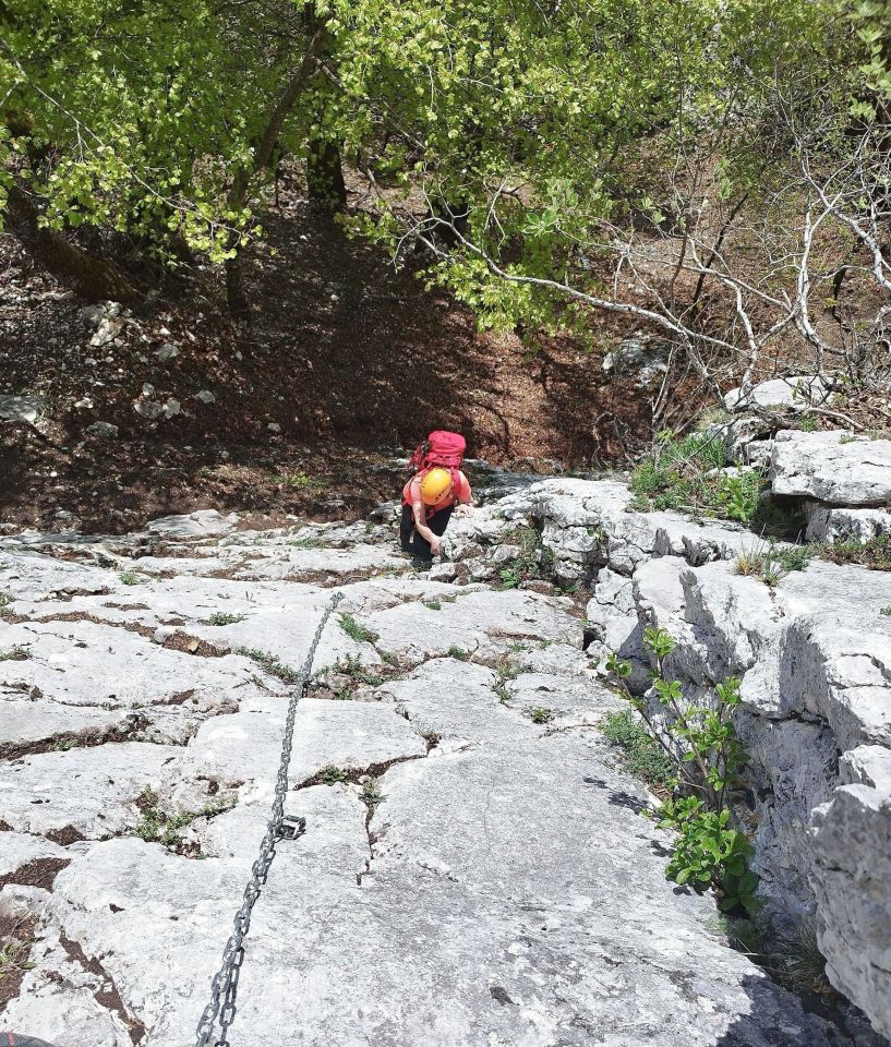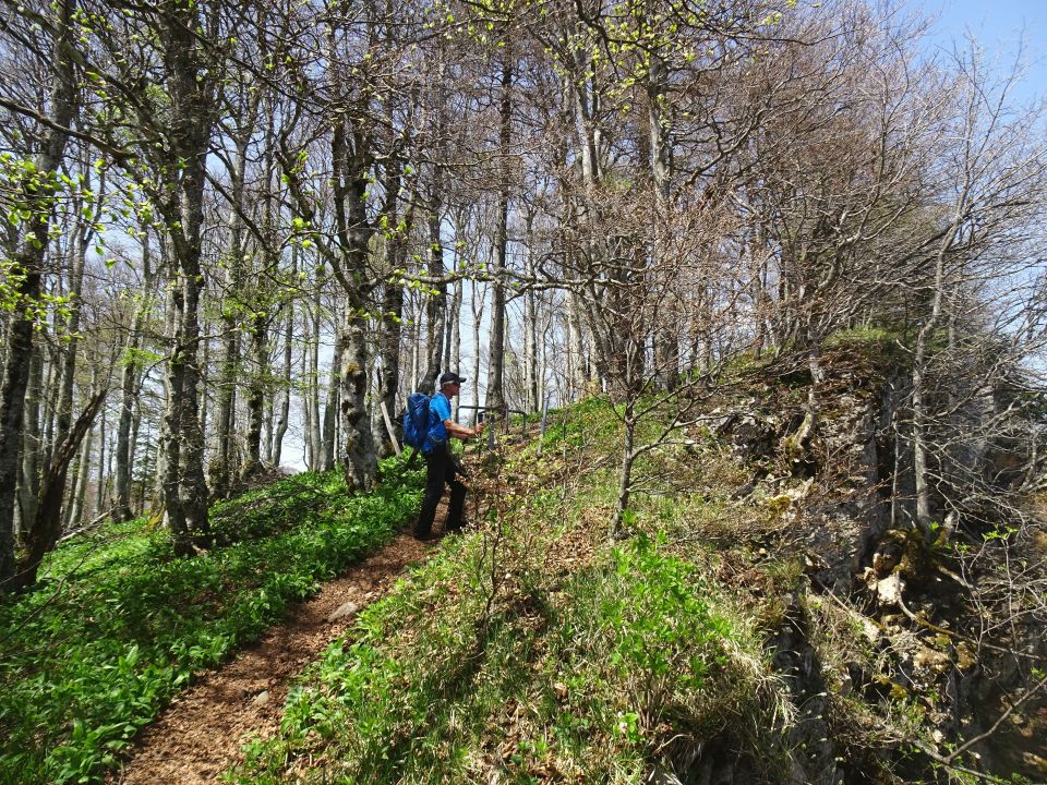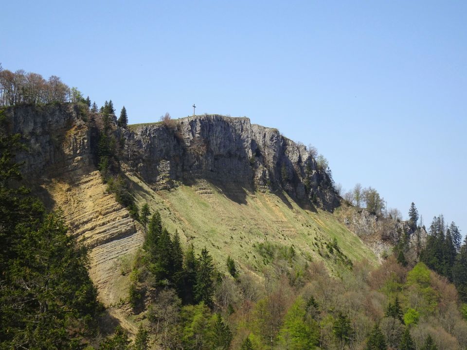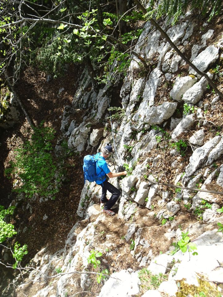 Der Wanderweg über P. 854 ist wg. Steinschlag gesperrt. Statt der ausgewiesenen Alternativroute, die erst wieder nach unten führt, kann man oben auf einem direkten Weg zum östlichen Zustieg queren (oder gleich hierhin aufsteigen).