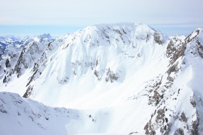 Ober in den Schatthängen sind unverspurte Pulverschneehänge vorhanden (gewesen).