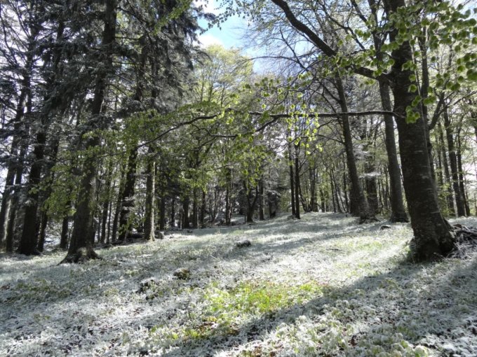 Spezielles Ambiente, saftig grüne und blumige Wiesen, frisch überzuckert. Das frische Grün der Buchenblätter feinkristallig überzogen...