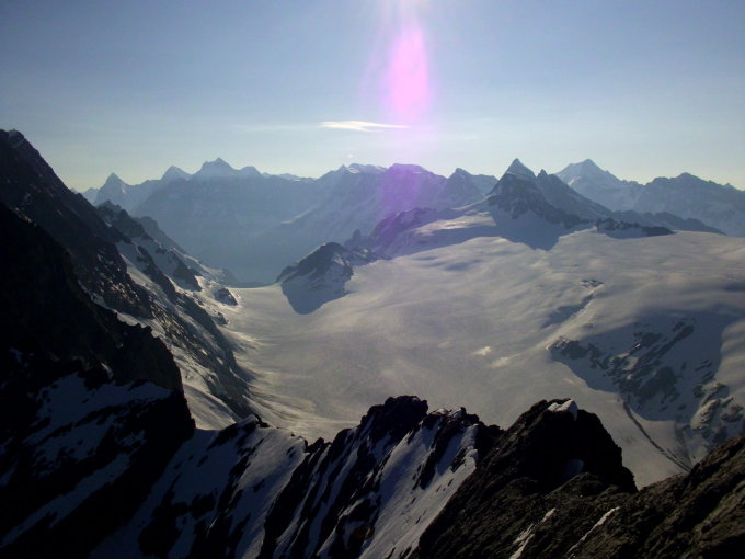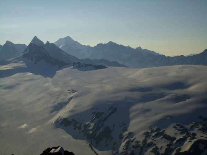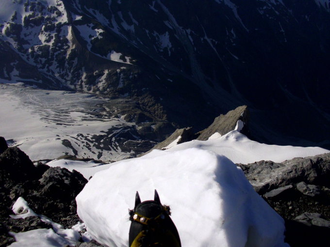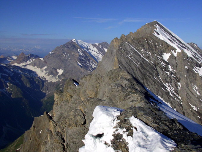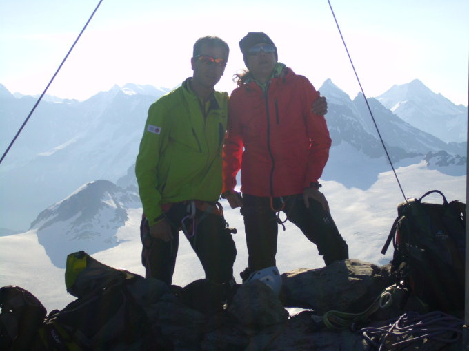 Top Verhältnisse, die Felspassagen sind komlet eisfrei, an 2-3 Stellen betretet man kurz Altschnee. Der Firnhang ist zum grössten Teil tragfähig, beim abstieg unterhalb 3100m etwas eingesunken. Wir sind kurz vor 6 Uhr gestartet und waren um 8 Uhr auf dem Gipfel.