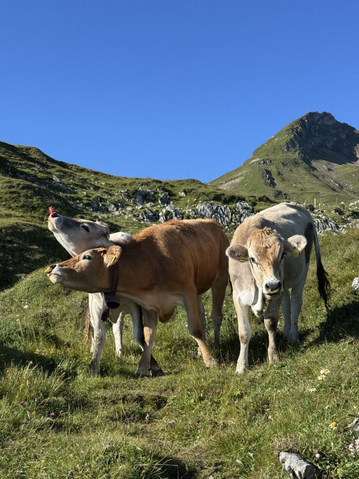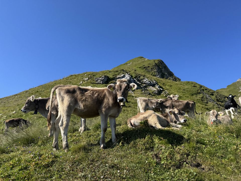 Nach dem Zwischenfall nichts wie weg von den Hunden und entlang des Weidezaunes nach Süden und dem Zaun folgendend, vorbei an zahlreichen Kühen bis zur Oberen Platte, wo die Kälber oder Rindli weideten. Auf jeden Fall war ich sehr überrascht, noch so hoch oben Vieh anzutreffen.