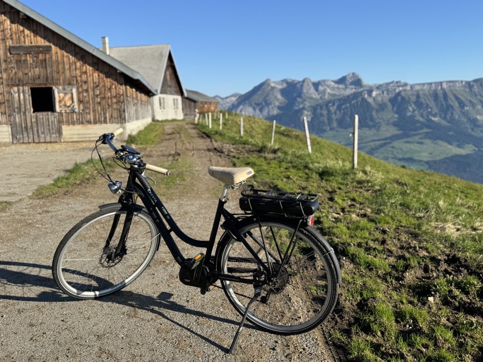 Aus dem Kofferraum das E-City-Bike ausgepackt und bis zum Obersäss (1'744m) geradelt.
