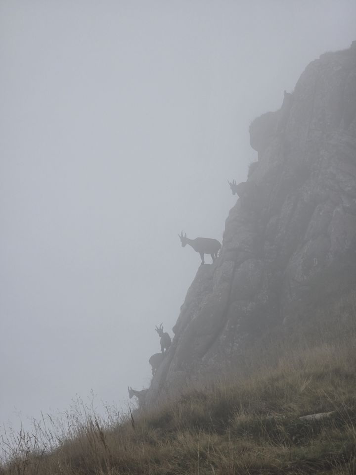 Direkt beim Gipfelkreuz sind einige Steingeissen mit Ihren Kitzen.