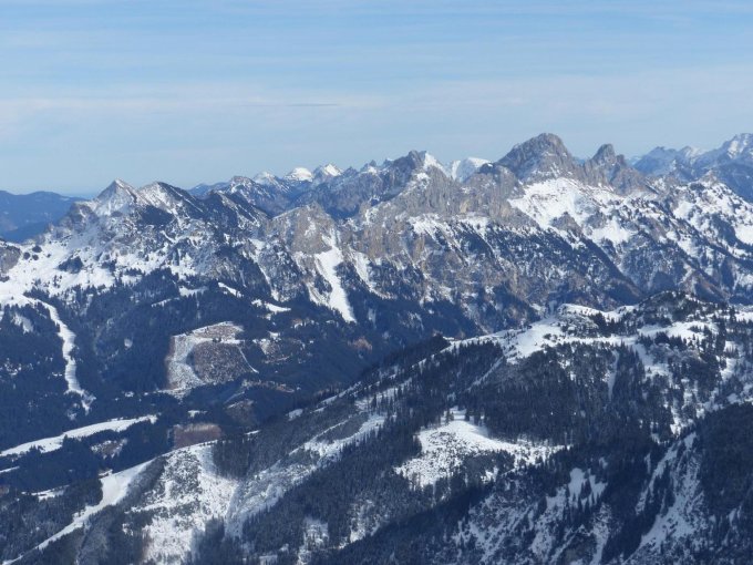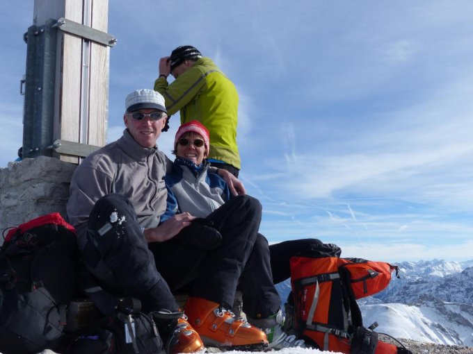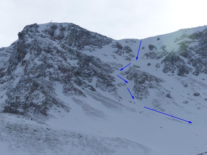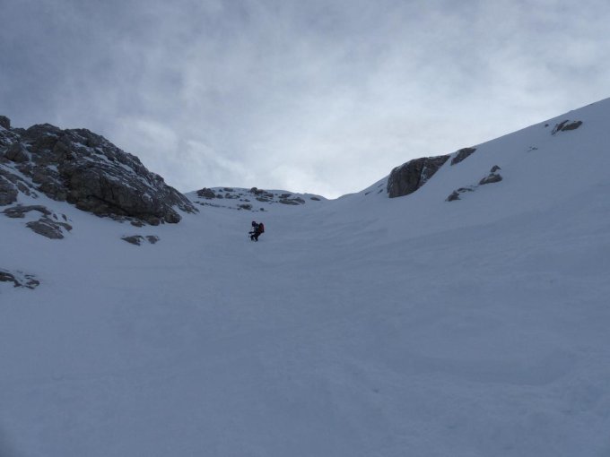 Ski ab Gaiseck bis Einfahrt zur Gipfelrinne geschultert, da Grat abgeblasen und tw. vereist (Aufpassen!)