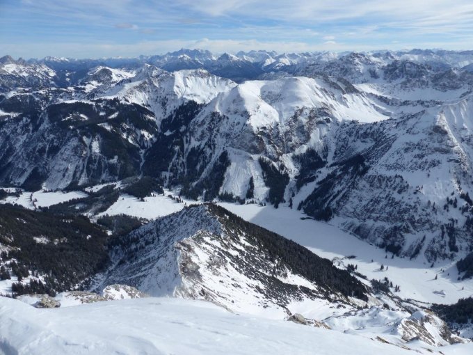 Schnee sehr ausreichend, doch Abfahrt ab Älple auf Fahr-/Forstweg zu empfehlen.