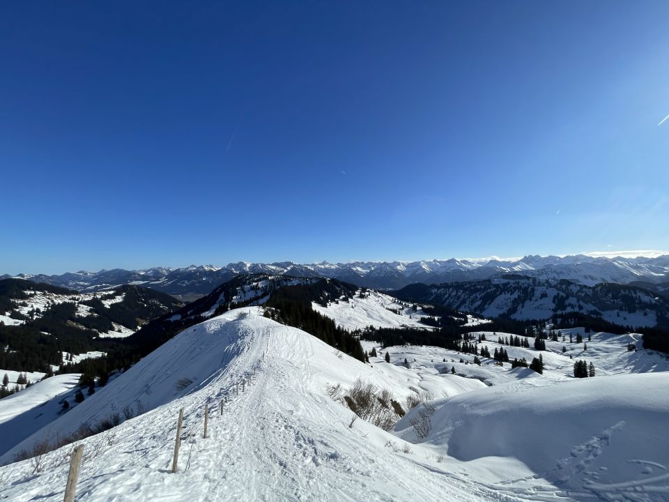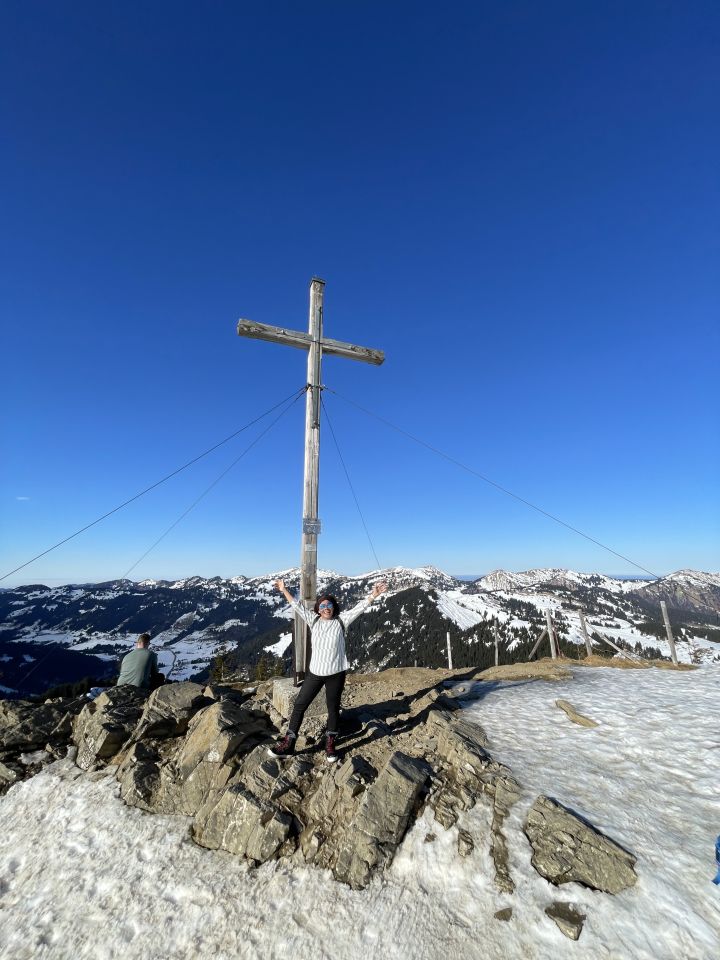 Sehr schönes Wetter mit herrlicher Aussicht (360° Berg-Panorama). Es lag mittelmäßig Schnee und wir waren stolz von der Bergstation bis zum Gipfelkreuz zu laufen