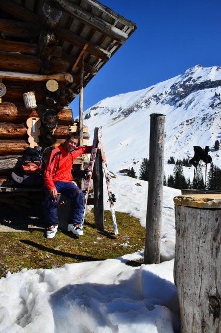Frühsommerlich warm heute aber beim Aufstieg trotzdem noch hart. Eine gute Spur gibt es im Couloir. Weiter oben prima. Bei der Abfahrt oben hart und weiter unten Sulz.