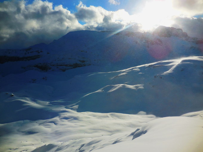 Start am 7.30 Uhr beim Fadbödeli auf 1400 m. alles entlang der Alpstrasse, bis Hüttenboden, dann 5-10 cm Pulverschnee aber Zeitweise schon Windverblasen.