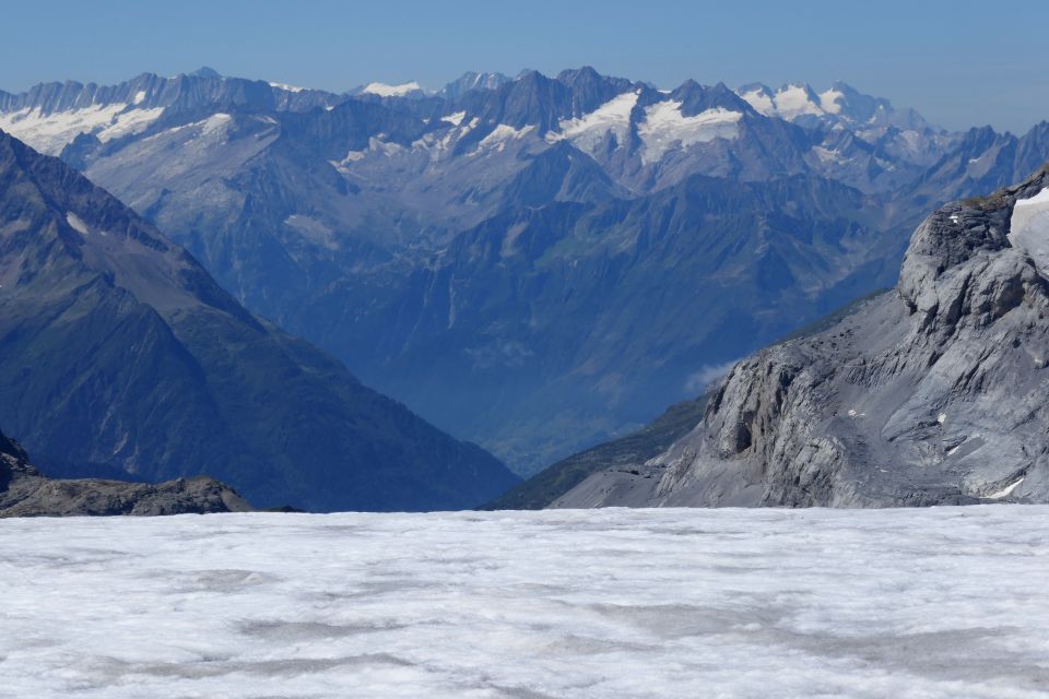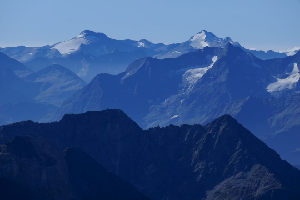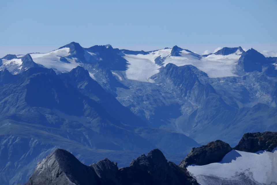 Der Claridenfirn wird auch immer kleiner, aber vorübergehend ist sie noch da. Die Aussicht sucht seinesgleichen. Vor allem der Kontrast mit Weitsicht zu den Ost- Zentral- und Westalpen und der schönen Tiefblick machen diesen Gipfel einen wahren Aussichtsmeister.