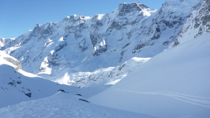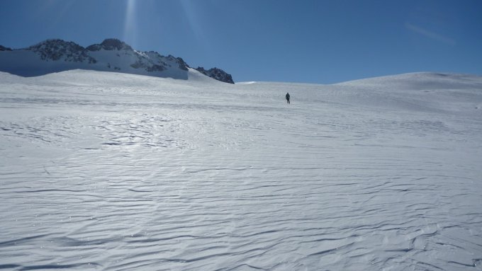 Bleibt sicher noch ein paar Tage, da in die nordostseitige Abfahrt kaum Wind reinkommt