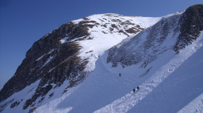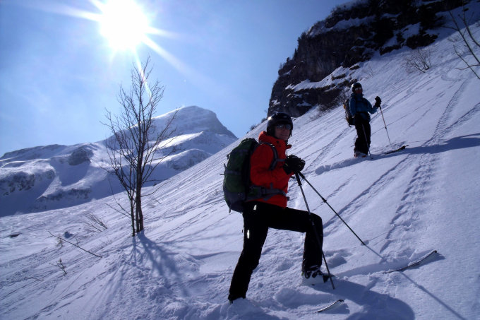 Nach dem Fulfirst haben wir den Alvier angehängt. Beste Verhältnisse im Aufstieg und in der Abfahrt. Die Steilstufe kann bis auf die letzten zirka 20 Höhenmeter mit den Ski begangen werden. In der Abfahrt dem Sommerweg folgen.