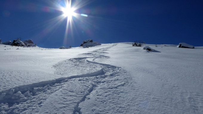 Alle Talabfahrten wurden grosszügig befahren, ohne Neuschnee heisst es kreativ werden, wer eigene Spuren ziehen will (gibt aber noch diverse Möglichkeiten...).
