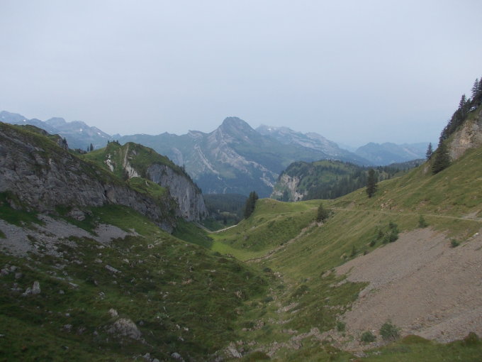 Als wir gegen 7.45 Uhr von Unter Roggenloch losmarschiert sind, konnten wir noch von einer überdurchschnittlich klaren Sicht profitieren. Mit raschem Wolkenaufzug wurde es gleichzeitig diesig, die Wolken ergriffen rasch die umliegenden Gipfel und schließlich auch den Pfannenstock, just als wir auf dem Gipfel eintrafen. Im Nebel stiegen wir dann auch wieder ab, später zeigte sich der Gipfel wieder frei. Es blieb niederschlagsfrei bis zum Schluss.Wege trocken, zwei unkomplizierte Schneefelder im Gipfelaufstieg.