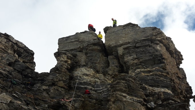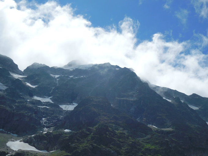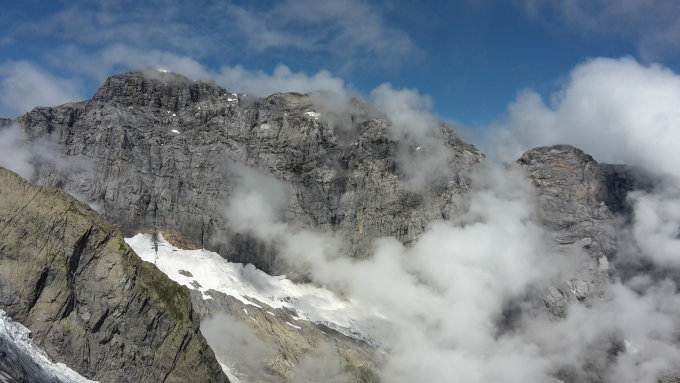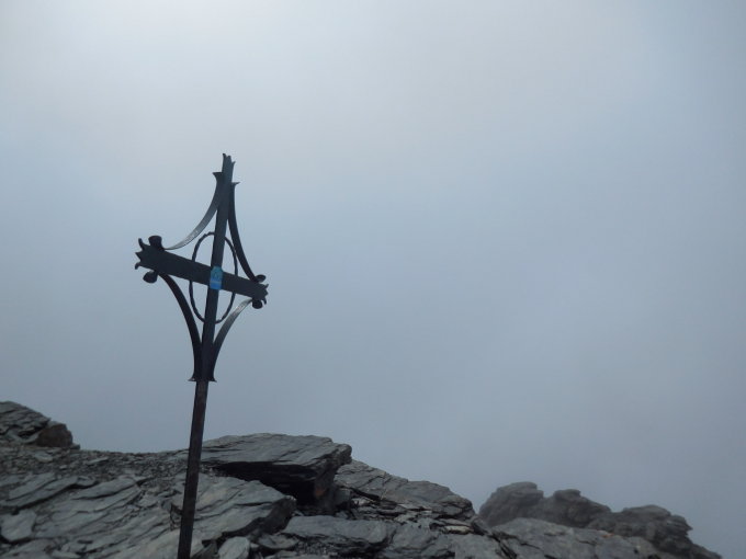 Start der Tour am 5.45 Uhr beim Bodenberg, bei bewölktem Wetter, entlag dem frisch gemähten Weg zur Kröntenhütte, der Weg zum Glatt Firn ist Blau-Weiss markiert, er war schon gut trocken, der Untereteil des Glatt Firns war schon blank, die Steigeisen waren da erforderlich, beim Gipfelgrat dann dichter Nebel, aber trotzdem gut zu finden dank Wegspuren bis zum Gipfelaufbau, für den Gipfelturm ist ein Seil erforderlich, die Schlüsselstelle der Tour sind die letzten 10 Meter zum Gipfelturm, durch einen sehr engen Kamin