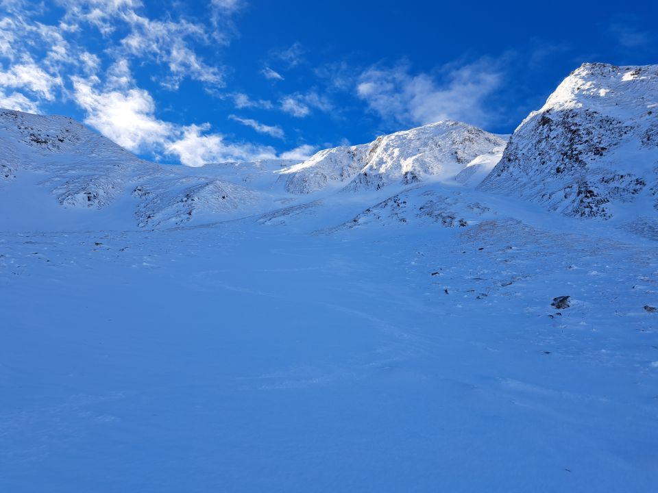 Aufstieg durchgehend Schnee genug bis Gipfel.