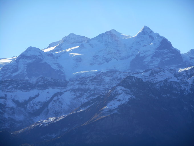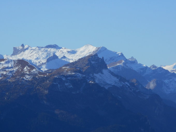 Trotz der geringen Höhe vom Wilerhorn erkennt man im Westen, das Wildhorn und den Les Diablerets. Eine Vielzahl von Bergen in den Freiburger- und Waadtländeralpen lassen grüssen.
