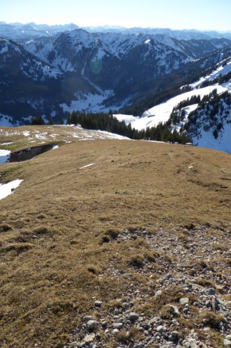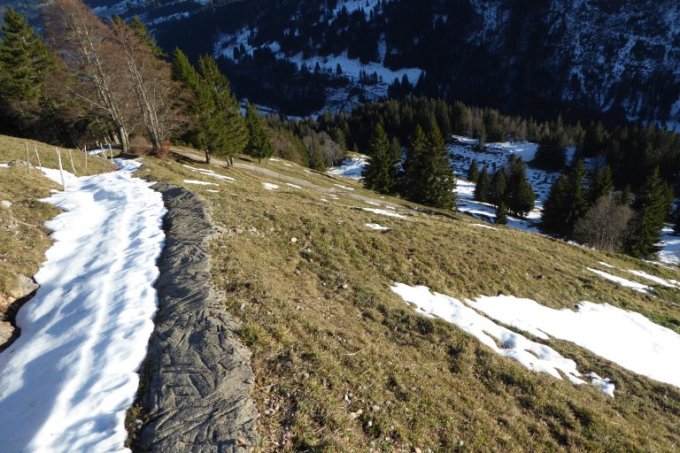 Noch vor wenigen Tagen hab ich im Atlantik gebadet, so wollte ich nur eine kurze Erkundungstour wie es im Gelände aussieht machen. Durch die "Einlage" hat es halt 1,5 Std. länger gedauert wie sonst. Die Rinne mit entstrechender Ausrüstung sicherlich, sogar ein Genuß. Fazit: von dem vielen, tollen Schnee den es während meiner Abwesenheit hingehauen hat, ist in mittleren Lagen nicht mehr viel übrig geblieben.