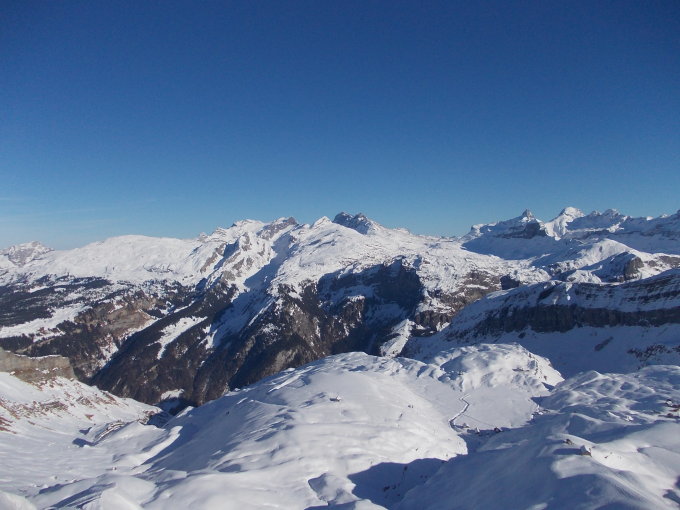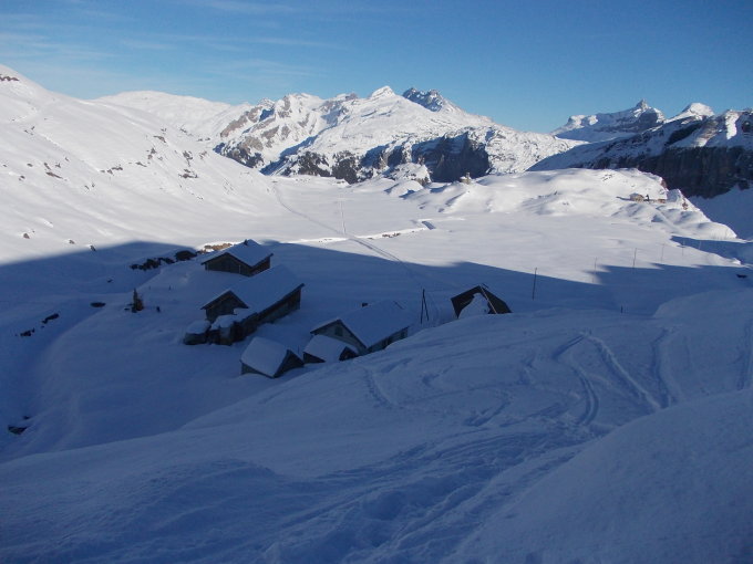 Traumhafte Wetterbedingungen mit strahlend blauem Himmel, windarmen Verhältnissen und für die Jahreszeit recht milden Lufttemperaturen.Überraschend üppige Schneemengen für mich, der ich die vergangenen Wochenenden in den noch schneefreien Bereichen des Tessin zugebracht habe. Zudem, entgegen der Erfahrungen, welche von anderen Gipfelbuchautoren in den beiden Tagen zuvor gemacht wurden (Deckelung, Bruchharsch), überwiegend schöner Pulver, weiter unten etwas feucht. Der Ziehweg im Wald dürfte insbesondere von Skifahrern als recht ruppig empfunden werden, ist aber durchgehend schneebedeckt. Insgesamt sowohl für Skifahrer und Schneeschuhtourengeher gute Verhältnisse. Umso überraschender war die Tatsache, dass wir dieses sonst so populäre Firsthöreli für uns allein hatten. Unterwegs trafen wir insgesamt nur vier weitere Personen, nämlich ein uns morgens entgegenkommender Skifahrer, sowie drei vom Sangigrat abgefahrene Skitourler.