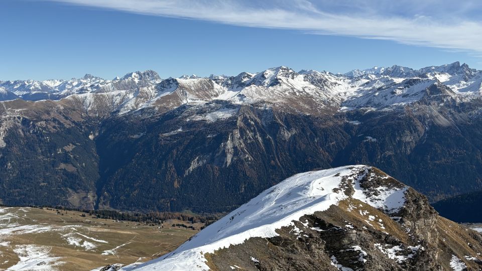Für den Pintg im Aufstieg ab P. 2121 direkt den aperen und steilen Osthang hinauf. Felsriegel T5/ll.