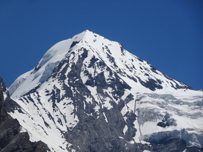 Eigentliche Überschreitung vom Morgenhorn zum Blüemlisalphorn hat eine gute Spur und zurzeit sehr gute Verhältnisse. Abstieg zum Rothornsattel hat guten Trittschnee und die Felsen mit den Sicherungsstangen sind aper und eisfrei.