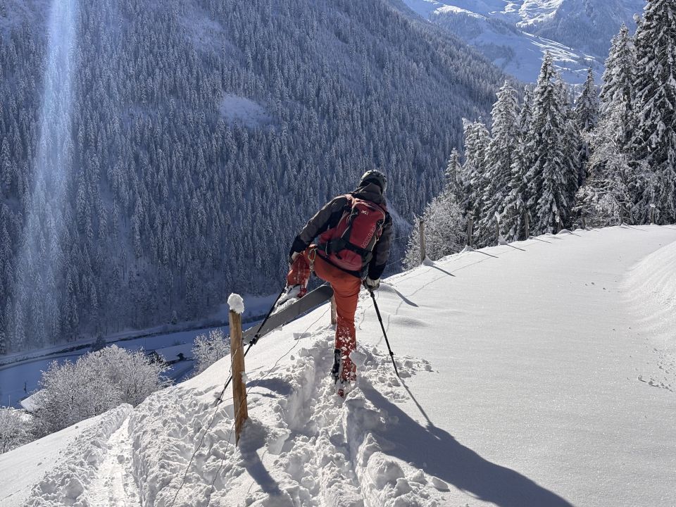 Unterhalb von zirka 1'400m dann ohne Unterlage, aber immerhin rund 40 - 50cm Pulver, bis nach Zwischenflüh hinunter wird der Schnee dann weniger, aber immer noch gut fahrbar. Den einzigen Steinkontakt hatten wir oberhalb der Brüüscht (ca. 1'600m) in einer Waldquerung - dank Steinski aber sehr verschmerzbar.