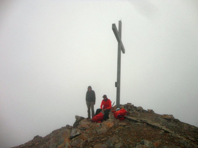 Leider gingen die Restwolken des Gewitters vom Vortag ziemlich bald in Quellwolken über und nach kurzen sonnigen Phasen im Aufstieg war der Gipfel dann komplett in Nebel gehüllt. Nach unten hin wieder zunehmend bessere Sicht und bis abends trocken.