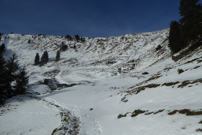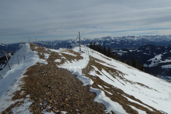 Die ganze (Ski)Pracht ist in den Allg.Voralpen wieder hinüber. Zu Fuß zur Zeit keine großen Probleme, natürlich muß man mal kurz in Verwehungen ordentlich Spuren. Lästig war nur der Wind oben am Grat zu den Gipfeln. Für die Skifreaks ist zur Zeit noch nicht all zuviel zu holen. Ausser man sucht höher gelegene Regionen auf.