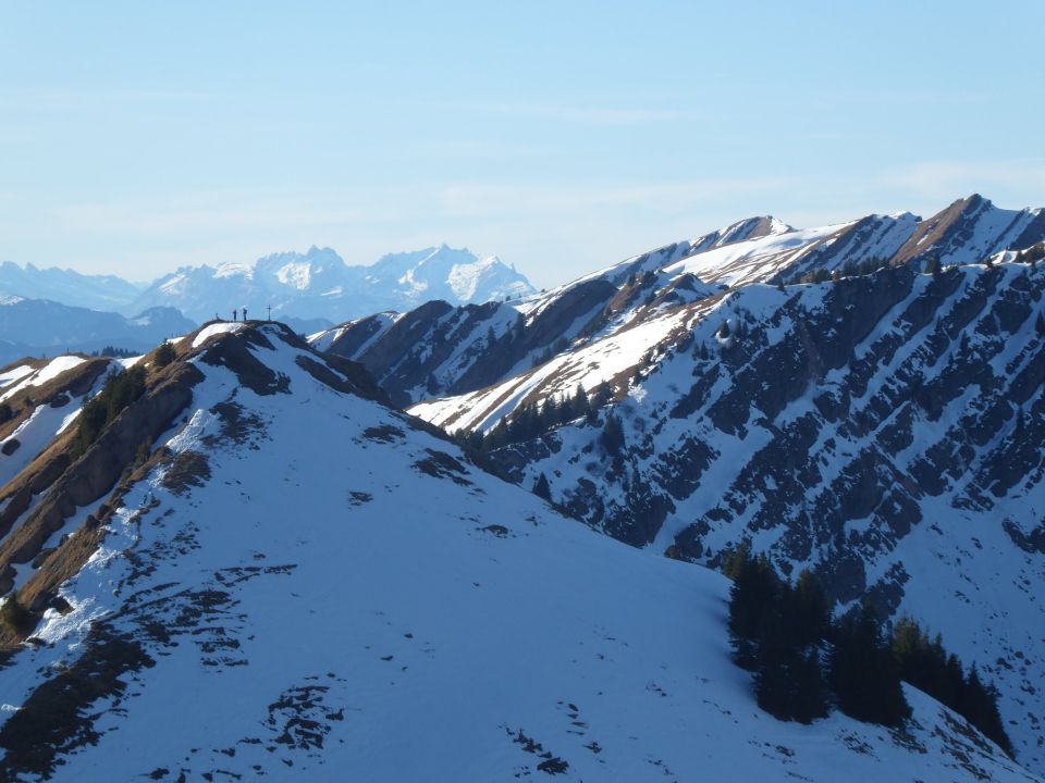 Kaiserwetter mit bester Fernsicht. Bis Ornach raschelte das trockene Laub, auch die Steilstufe zu Rothen hoch bestens. Die ganze S-Flanke siehe Bild V6 fast Schneefrei. Kurze Passagen sind schmierig und 2 überschaubare Schnee Querungen sind gespurt und tragend. Der Rest zum Gipfel ist aper. War überraschend einiges los, aber es verteilte sich gut. Aktuell nur zu empfehlen, statt mit Ski den Schnee aufwendig zu suchen (!)