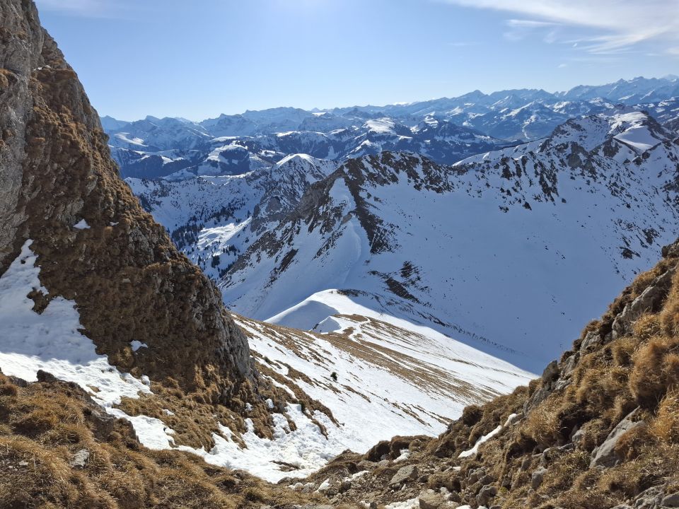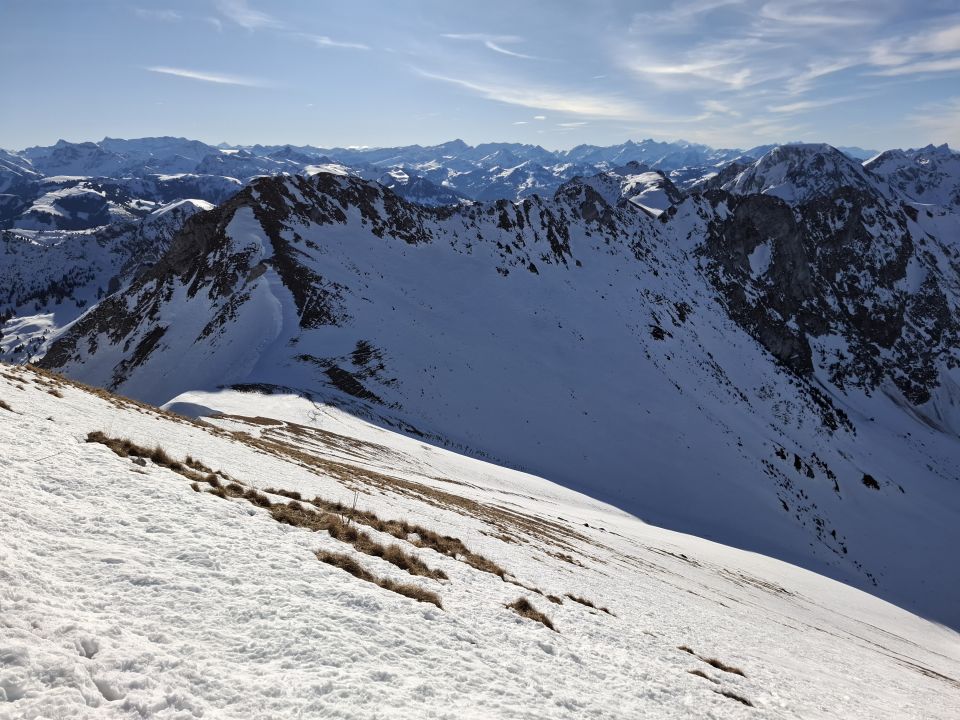 Ochsen Gipfel Fussaufstieg: nur an wenigen Stellen etwas harter Schnee.