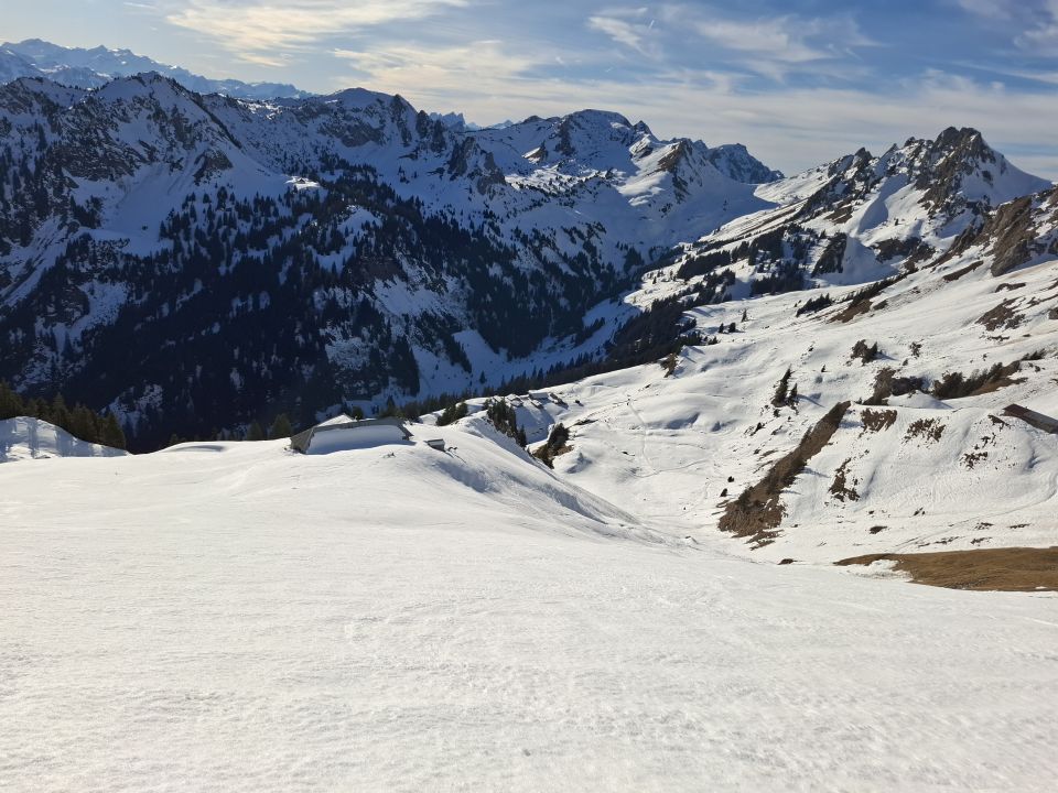 Wetter. Sonne Pur mit etwas Wind der nicht störte. Es hat nicht all zu viel Schnee im Gebiet. Im Schatten hart gefroren oder leichter Deckel. Je nach spuren sehr Ruppig. Aber wenn ohne Spuren gar nicht so schlimm.