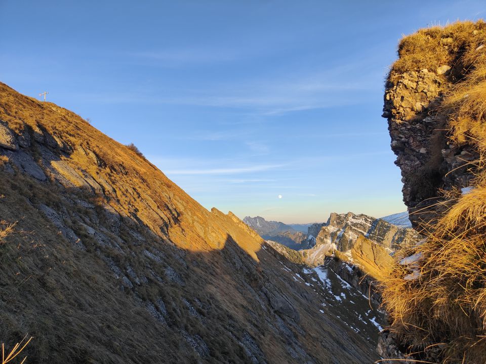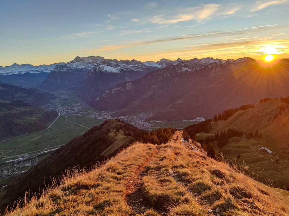 Sundowner am Federispitz via Vorder Federi und Abstieg über Plättlispitz. Start um 13.00 ab Ziegelbrücke und in 3 h am Gipfel. Wege teils feucht aber gut begehbar. Auf der ganzen Tour kaum Schneekontakt und abgesehen von Forstarbeitern keine Menschenseele angetroffen. Am Gipfel herrlicher Sonnenuntergang und anschliessender Abstieg zurück nach Ziegelbrücke.