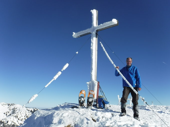 Beim Aufstieg übersah ich verschneiten Wegseiser zum Gipfel und verpasste den ersten Rechtsabzweig und gelangte in nächste rechte Mulde hoch zum Gratkopf. Spuren gab es zum Heidenkopf. Ich drehte wieder um und traf im Abstieg auf den Wegweiser. Dann ging's wieder normal weiter links hoch.