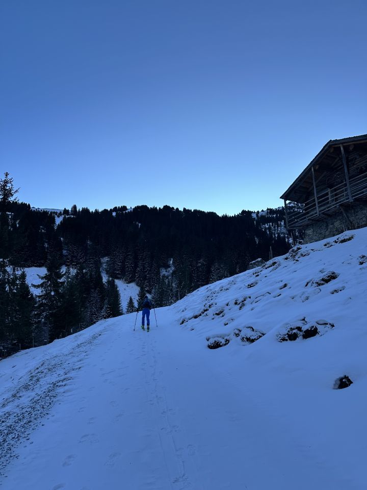 Nicht zuviel Schnee aber es geht. Abfahrt werden wir wohl ein pasr Tragepassagen machen.