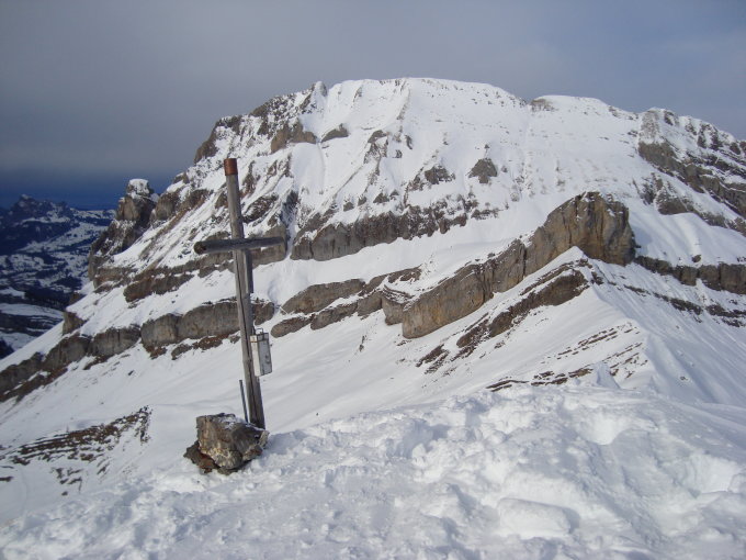 Mir kam unterhalb des Gipfels eine 20köpfige Skitourengruppe entgegen, geführt vom Muothataler Local Konrad Schelbert. Ich gehe davon aus, dass er gespurt hat. Besten Dank an dieser Stelle.