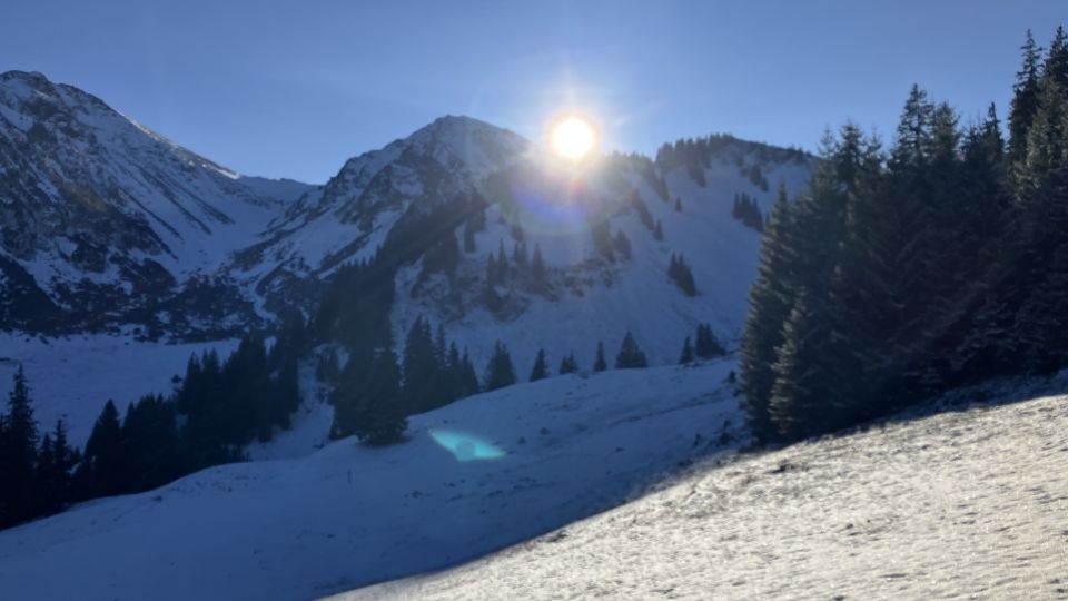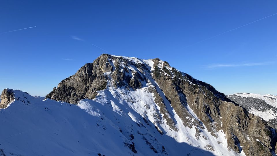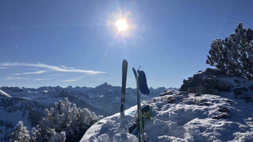 Anfangs auf Piste gut zu gehen, durchgehend Schnee. Im Pontenkar dann erstaunlicherweise gut in Aufstieg und Abfahrt, obere Hälfte sogar Pulver. Gipfelanstieg zu Fuss, ging gut ohne Steigeisen, Wanderweg tlw. aper. Gegen Schluss auf der Piste mit neuen Skis aufpassen, da Feindkontakt nicht zu vermeiden.