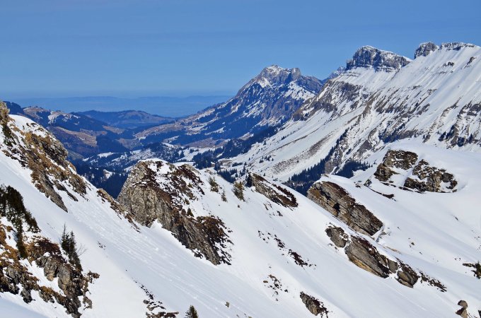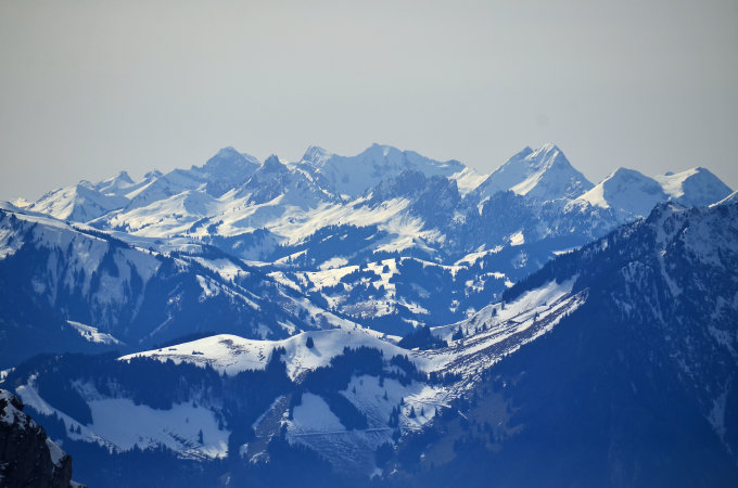 Die Aussicht war wunderbar und die spezielle "Geköpfte Gipfel Stimmung" bei den hohen Berner sehr interessant. Die Landschaft hier erinnert manchmal eher den Rocky Mountains als die Alpen, bis man dann die, heute geköpfte, Berner und im Norden das Mittelland und Emmental sieht. Heute habe ich am Berg nur 2 Tourenfahrer begegnet und laut Gipfelbuch war der Letzten Eintrag vor knapp einem Monat... Eben, ausser diese Tourenfahren hatte ich die Region für mich ganz alleine, was einer Meditation gleichkommt.