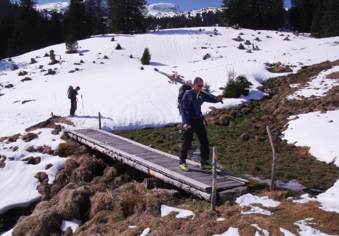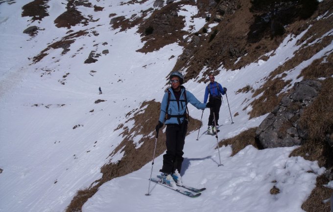 Beste und sichere Verhältnisse im Aufstieg, wie auch in der Abfahrt. Der Rücken des Fulfrist war angenehm im Aufstieg und ideal in der Abfahrt. Erst die letzten Hänge oberhalb Imalschüel waren weich, konnten aber ohne Probleme befahren werden.
