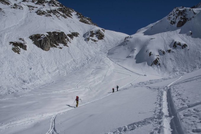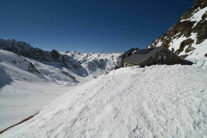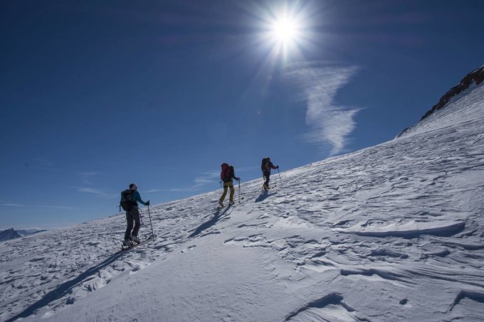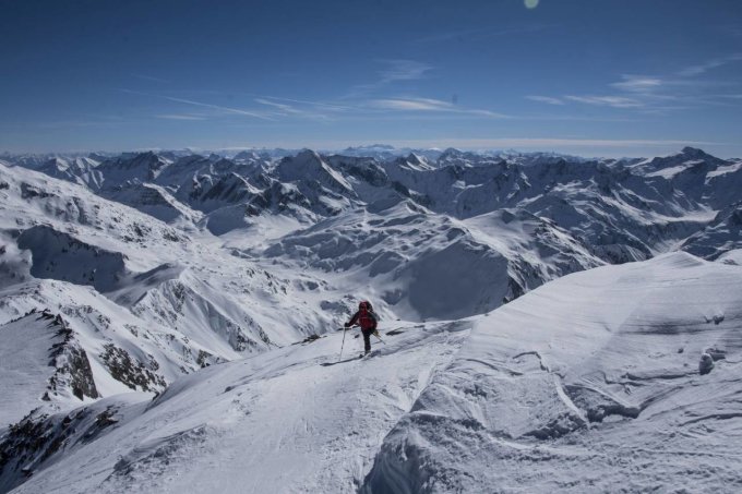 Ab Medelserhütte top Verhältnisse. Gletscherplateau wie erwartet verblasen. Gipfelhang gut gespurt, Gipfelgrat gut festgetreten. Auf der Abfahrt unterhalb des Gletscherplateaus Pulverschnee.
